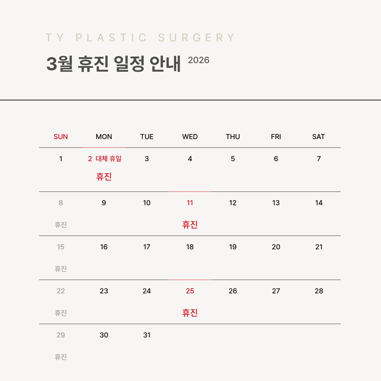 일요일 | 휴진